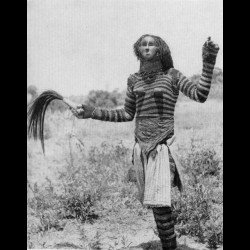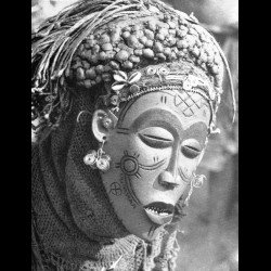 Ce masque traditionnel pwo ou mwana pwo figure une jeune femme dans la fleur de l'âge. Il était porté par un danseur enseignant aux jeunes filles une belle démarche. Le visage a été couvert de pigment rouge appelé tukula. On notera aussi que les scarifications bien présentes.