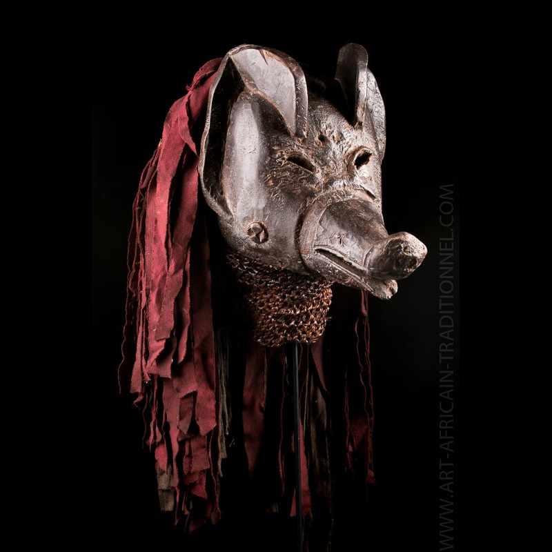 Dans l'art traditionnel Chokwe, le masque africain Mwana Ngulu représentent un cochon.