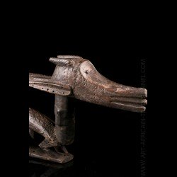 Cette magnifique pièce de collection figure une antilope hippotrague mâle. Le style correspond à celui de la région de la région de Bamako où l'objet a été collecté dans les années 1950 par un médecin français. Le style dit de Bamako se caractérise par une approche tout en horizontalité dans la déclinaison de l'antilope, s'opposant aux trois autres styles : ceux de Ségou, de Sikasso et de Bougouni.