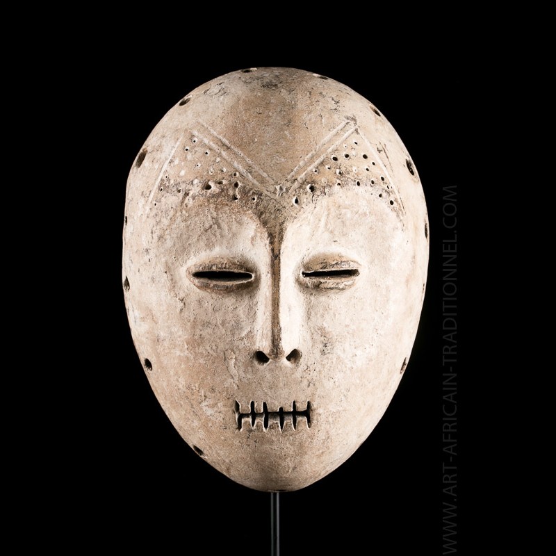 Ce masque Lega appartient à la catégorie des muminia. Comparativement aux masques de type lukwakongo, celui-ci présente des dimensions plus importantes. Ces masques sont utilisés au cours des initiations menant au second grade du bwami le plus élevé des grades lutumbo lwa yananio. Le propriétaire et gardien de ce masque était un initié du plus haut niveau du second grade le plus élevé du bwami. On observe ici de nombreux détails tels que des scarifications et une bouche dentée. Ce dernier élément est typique des régions du nord du pays Lega ayant subi une influence stylistique des Kumu et autres groupes des régions Ituri.