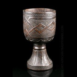 Sur cette coupe, on observe de beaux motifs composés d'imbrications d'entrelacs (Nnaam). Le col cylindrique est entièrement gravé d'un décor géométrique correspondant au dessin Makwoonglmatey. Cette coupe de forme noble adopte l’aspect du tambour dit Bukit.