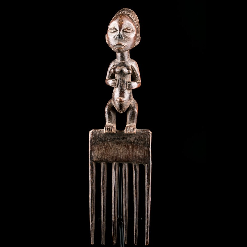 Les Luba, comme de nombreux peuples africains, ont transformé des objets simples du quotidien en petits chefs-d'œuvre d'art. Ces peignes ne sont pas nécessairement destinés à démêler les cheveux, mais sont portés comme décoration pour mettre en valeur les coiffures élaborées des femmes Luba. Ils sont souvent donnés par un parent masculin à un membre féminin de la famille une fois qu'ils sont majeurs. Il symbolise la transition des filles vers la féminité et lui confère un sentiment de fierté pour sa beauté et son apparence. Ceci est repris par la petite image de la femelle au sommet de ce peigne, qui représente l'expression des concepts Luba de beauté idéale.