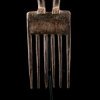 Un peigne en bois affichant une belle patine et couleur. Au sommet du peigne, formant une poignée, se trouve la figure d'une femme nue debout. Les cheveux sont une petite zone en forme de bonnet au sommet de la tête, le visage étant grand et ovale. Les yeux sont à moitié fermés et étroits et sont encadrés par des sourcils arqués. Le petit nez en forme de coin a des pommettes hautes sur les côtés. La petite bouche est ouverte et a un menton pointu en dessous. Le corps est de forme tubulaire avec des seins et un pubis proéminents. Les bras sont pliés au niveau des coudes, les mains reposant au-dessus du ventre. Les jambes courtes sont pliées au niveau des genoux et reposent sur le corps du peigne, qui est uni et a six longues dents à la base. Monté sur un support sur mesure.