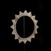 Collier de chef (Mulua u a mpu) en laiton gravé de forme circulaire, crénelée sur le rebord extérieur. Il est décoré de motif géométrique sur une face. Le collier est Fendu d'une ouverture permettant de l'enfilé. Teke. République démocratique du Congo.