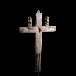 Les crucifix nkangi kiditu étaient fréquemment détenus par les chefs (mfumu) et utilisés dans des rituels de pouvoir (kimpasi), servant à la fois d’insignes de statut, d’objets de protection contre les malheurs, et de lien avec les ancêtres.