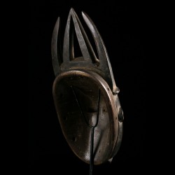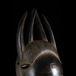 Les masques tribaux Yohouré sont souvent entourés d'une bordure dentelée caractéristique qui structure le masque et souligne l'harmonie générale des formes.