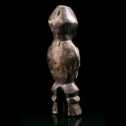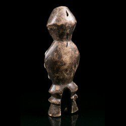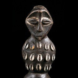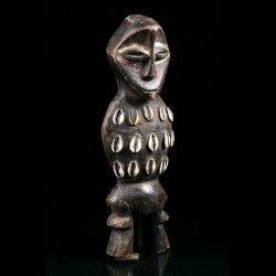Ce type de statuette est lié à la société initiatique du Bwami chez les Lega (Warega). L'art tribal Lega s'axe majoritairement autour du Bwami. On compte beaucoup de statuettes, de statues, de masques, d'objets en bois, en ivoire, en os. Ici, des cauris sont fixés sur le torse de la figurine.
