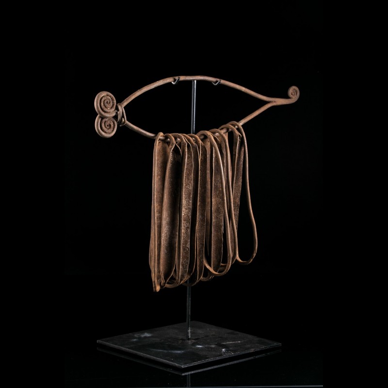 beaucoup sont en fer noir, métal particulièrement recherché. Il s'agit d'un type de monnaie nommé « gond ». Lors des cérémonies, leurs possesseurs les agitaient afin de conclure la