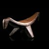 Celui-ci, en bois léger, est constitué d'une assise incurvée soutenue par trois pieds. On retrouve aux extrémités de l'assise des représentations animales. Des petits clous en laiton décorent la pièce.