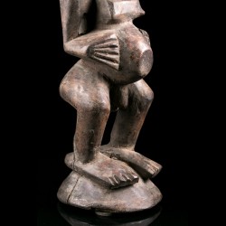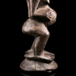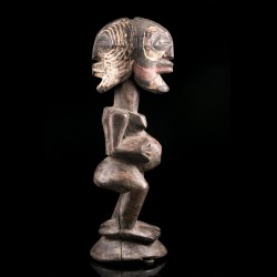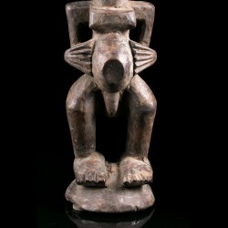 Les pièces comme cette statue africaine, dites Nkisi ou Nkishi, sont fréquentes chez les Songye. Elles se présentent la plupart du temps sous la forme d'un personnage debout, ventre proéminent, les bras fléchis et mains près du corps.Parfois dotées d'une cornes et d'accessoires, elles servaient à la protection des individus, de la famille, de la communauté ou du village tout entier selon la taille du Nkisi.