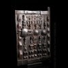 Cette belle porte Dogon a été sculptée pour s’adapter à la petite ouverture située sur le côté d’un grand grenier construit en briques de terre crue. Les personnages sculptés qui bordent la porte représentent le nommo, ancêtre mythique des Dogon.