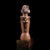 Superbe et ancienne poupée de fécondité en bois représentant une femme sous une forme abstraite à la patine bien érodée avec le temps et l'utilisation de celle-ci. La tête est en forme de dôme ou les cheveux sont représentés par deux crêtes sur le sommet. Le nez est représenté comme un coin au bas des cheveux et il y a un œil percé et une large bouche en forme de croissant. Le cou épais repose sur des épaules plates et le corps est en forme de cylindre ou y est figurés des seins et un nombril miniaturisé. La taille est représentée comme une jupe évasée jusqu’à la base. Poupée Mwana Hiti.