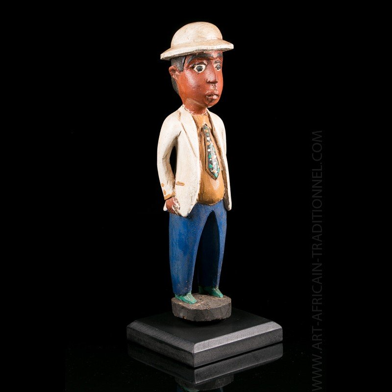 Historiquement, les avis des spécialistes en art ethnographique divergent quant à la destination exacte de ces figurines. Il semble en fait qu'elles pouvaient être diverses : certaines statues de colons étaient réalisées dans un simple but mercantile, d'autres étaient sculptées après le passage d'Européens dans un village afin d'en garder un souvenir positif ou de s'en moquer selon le comportement de ces derniers.