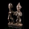 Ce couple de statues africaines monoxyle se trouve relié par la base ainsi que l'entrecroisement de leurs bras dans le dos. Il s'agit d'un type de figures d'origine Bakongo-Manyanga, en l'occurrence, dédié au culte lemba.