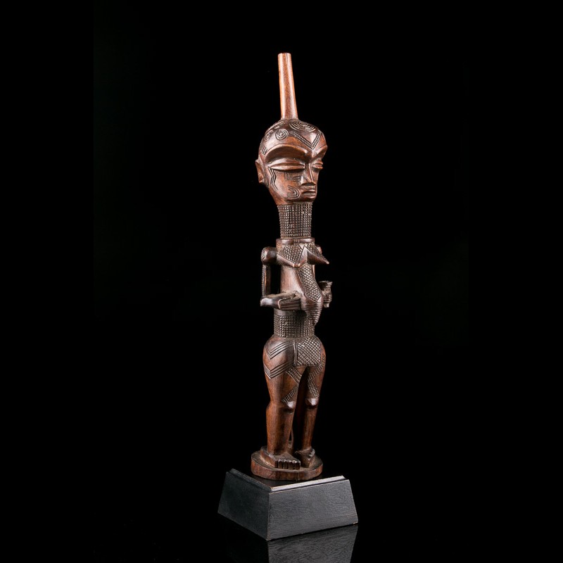 Les statues Lulua sont très particulières en raison de la profusion de gravures qui représentent des scarifications. Ces statues sont des figures de pouvoir et se présentent sous forme masculine et féminine. Les plus célèbres sont les femmes, comme cet exemple, qui sont connues sous le nom de mbulenga.