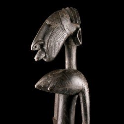 L'esthétique de cette statue est appuyée par la présence de remarquables scarifications sur le visage et le corps. Elle s'intègre au style dit de Ségou.