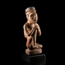 Selon la gestuelle codifiée de l'art africain Kongo, le personnage repose ici sur une base consistant en un morceau de bois dégrossi appelé kinkulu. La position est celle adoptée lors des débats visant à résoudre des problèmes et porte le nom de sendama. L'individu ou le chef appelle les ancêtres à lui accorder de l'attention en s'abaissant ainsi devant leur autorité.