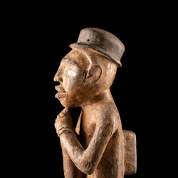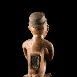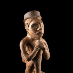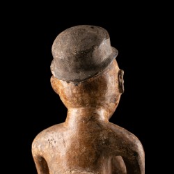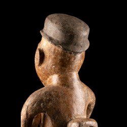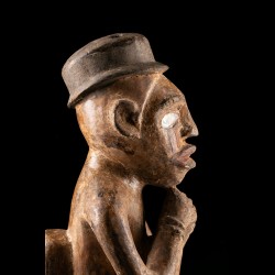 La présence du chapeau occidental sur cette pièce peut étonner mais il est est fréquent que les colons aient inspiré les sculpteurs bakongo et ce de façon précoce. Ainsi, en parcourant les statues de ce corpus, on rencontre des représentations coloniales sculptées dans le bois ou l'ivoire.