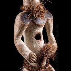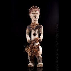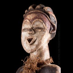 Cette statue datée du milieu du XXe siècle, au bois léger et aux formes arrondies ravira les collectionneurs d'objets du Gabon.