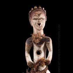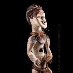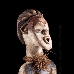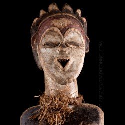Comme d'autres groupes ethniques du Gabon, les Vuvi / Vouvi ont sculpté des figures liées au culte des ancêtres. On reconnaît le faciès géométrique avec une bouche triangulaire expressive.