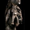 Le malheur et la maladie sont considéré comme étant soit des manifestations d’une puissance surnaturelle, soit des effets provoqués, à la demande d’un ennemi, par le truchement de la sorcellerie. Confectionné dans le plus grand secret, chaque Nkisi appartient à une classe particulière. Destiné à la divination, aux techniques de communication avec l’au-delà, celui que nous vous proposons est de grande taille, les plus impressionnants et les plus redoutables, peuvent atteindre jusqu’à 1 mètre de haut. Il est voué à la protection individuelle, son rôle est de détecter puis d’anéantir les dangers menaçant son propriétaire. Chargé d’accessoires divers, le Nkisi assure également des fonctions thérapeutiques. Le Nkisi Nkondi est efficient pour les actes annulant les effets de la sorcellerie, mais il intervient aussi pour des rites au cours desquels se contractent des engagements impliquant des relations d’intérêt entre diverses parties. Le rôle du nganga, à la fois témoin et officiant des cultes, revêt une importance fondamentale : l’efficacité de Nkisi Nkondi dépend toujours du savoir-faire et de la vigilance de l’opérateur.