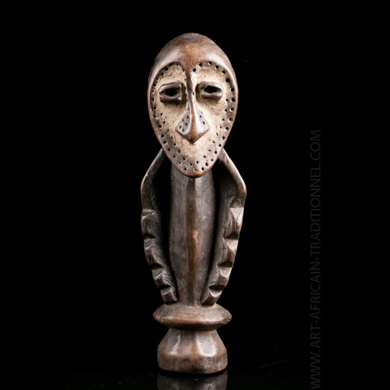 Figurine d'art africain traditionnel hautement stylisée lié à l'initiation des membres du Bwami, l'organisation qui régit l'ordre social et moral chez les Lega au Congo RDC.